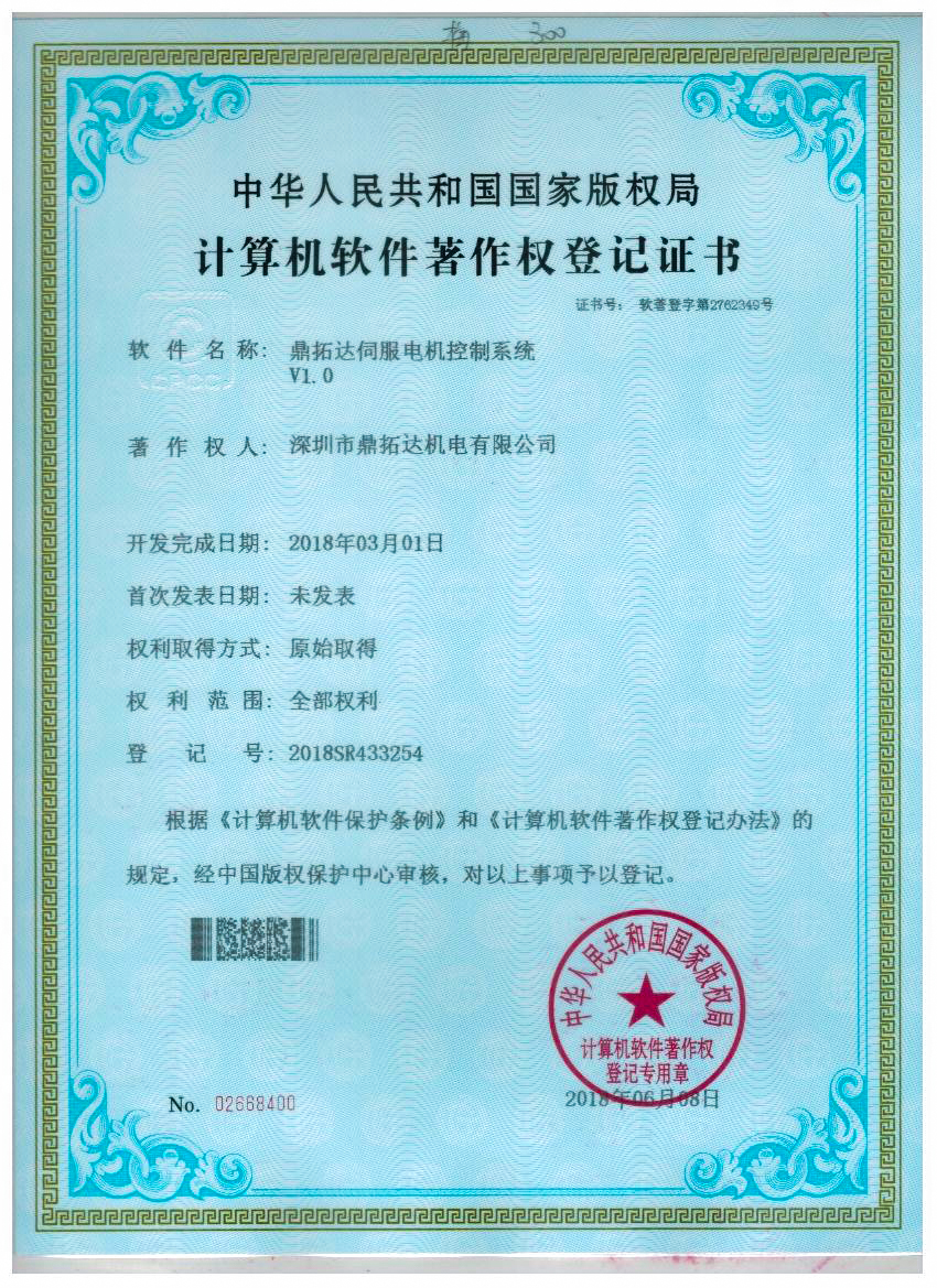 首頁->產品認證->鼎拓達伺服電機控制系統V1.0