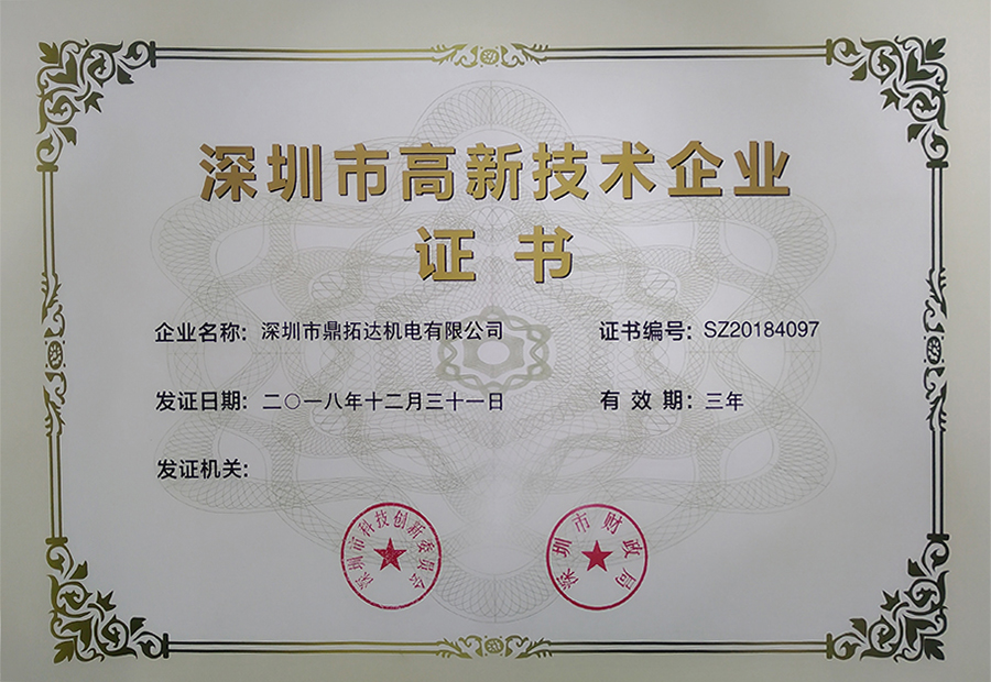 深圳市高新技術(shù)企業(yè)證書
